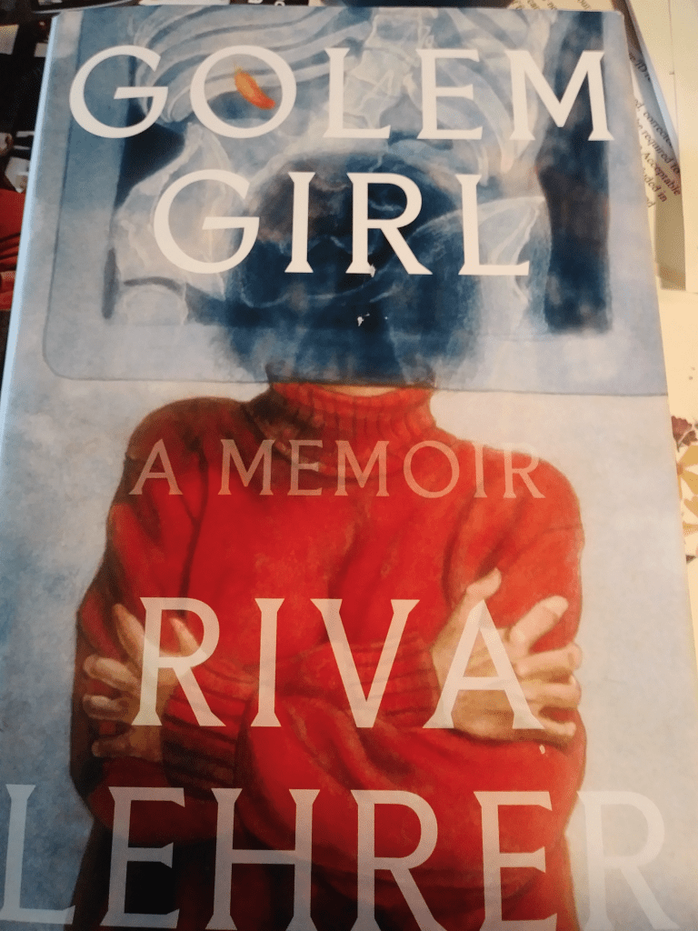 I will describe Riva’s memoir, Golem Girl, as a deeply spiritual book. That is the experience I try and put to words in the first paragraph of this piece—being filled with spirit. It is the story of someone who has squarely faced death, the perverse, abnormal, loneliness, the “other” and has chosen to participate fully in building a life and an identity with a wholeness of body and spirit that comes from such a reckoning. It is what I define as Love, the Spirit, creativity, beauty—a web of relationship.